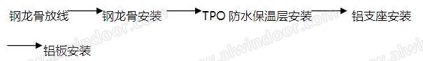 (1)安裝防水保溫層鋼龍骨及鍍鋅鋼板。