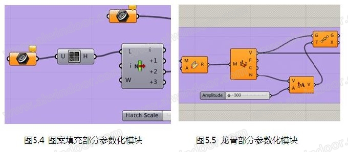 設置點支撐鍍鋅鋼龍骨、鑄鋁圓底盤、面板、彩繪圖案等參數化模塊,快速準確表達扭轉雙曲面彩繪鋁板幕墻構造,為幕墻提料階段打下基礎(如圖5.4~5.5)。