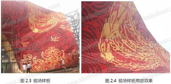 本項目彩繪鋁板多達14667件,約1.4萬平方米,花紋樣式達數萬種,每塊鋁板的尺寸及圖案均不相同,同時板塊之間需要對紋、接縫,任何細小的誤差都會被累積放大,最終導致幕墻達不到預期的效果,加工難度極大。