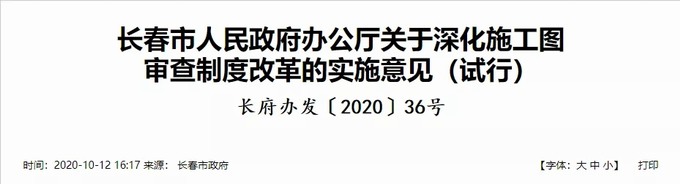 近日,《長春市人民政府辦公廳關于深化施工圖審查制度改革的實施意見(試行)》發布了。