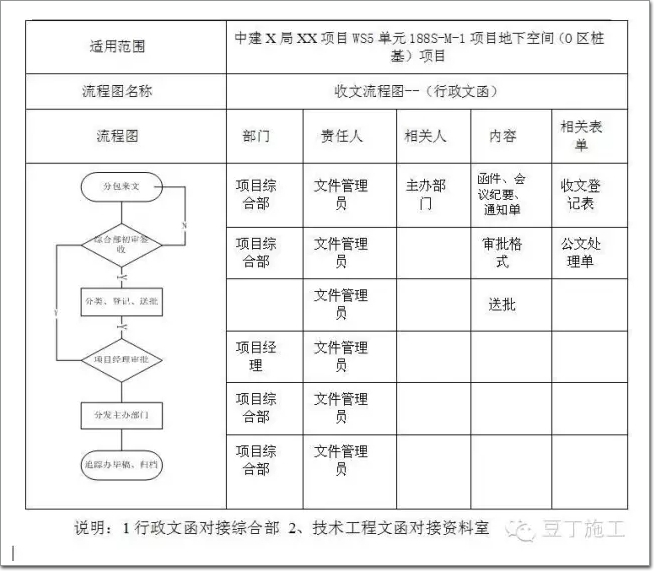 2.往來函格式:分包單位向總包發文只限于工作聯系權限。 細則要求:1)無日期不予以接收授理2)無編號、或跳號不予以接收授理3)無項目經理簽發不予以接收授理 4)無加蓋項目章不予以接收授理