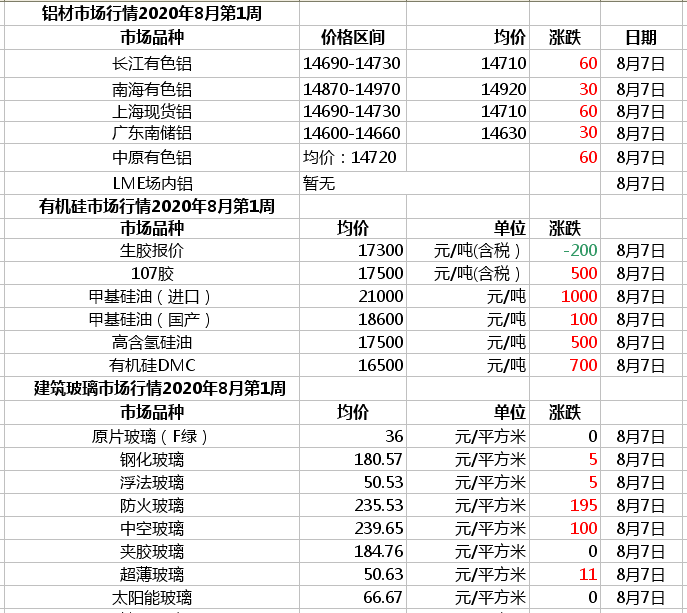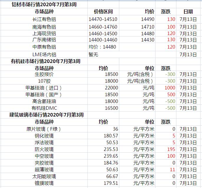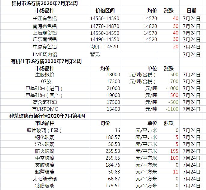 此原材料價格由中國幕墻網收集整理,僅供參考!