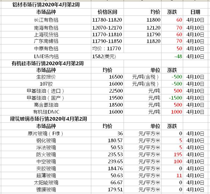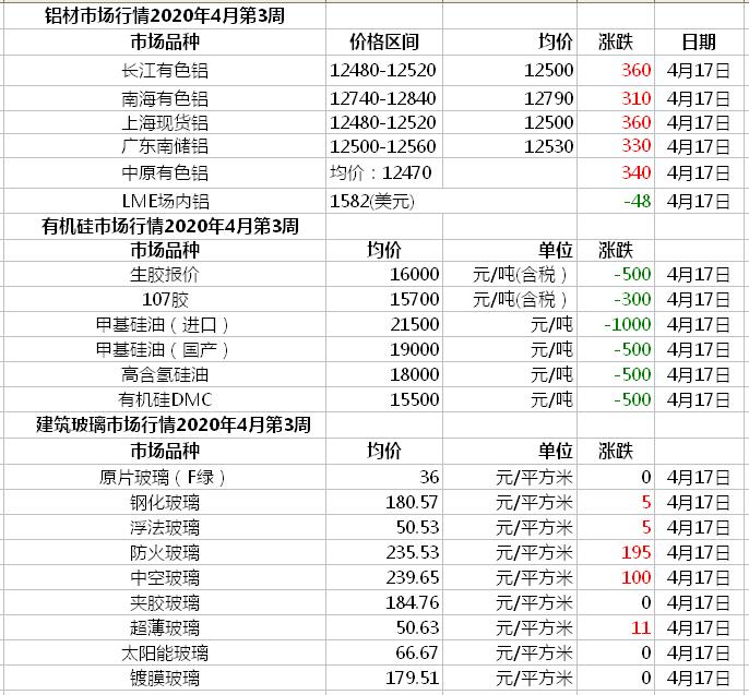 此原材料價格由中國幕墻網收集整理,僅供參考!