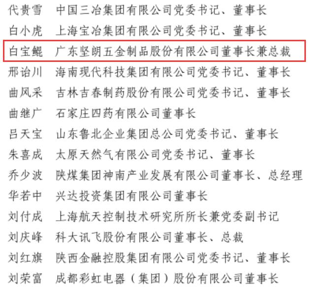 廣東堅朗五金制品股份有限公司總裁白寶鯤榮獲“2019—2020年度全國優秀企業家”稱號。