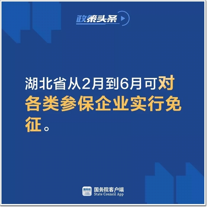 除湖北外各省份,從2月到6月可對中小微企業免征上述三項費用,從2月到4月可對大型企業減半征收。