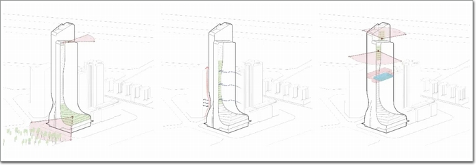 GWP提倡“建筑是一種詩意的棲居,以恰到好處的平衡之美營造獨特的建筑形象和空間氛圍”。設計團隊希望在這個地標高(詞條“標高”由行業大百科提供)層綜合體的設計中本著以人為本的出發點,注重采光,通風,與自然生態景觀相融合,引入多層次交互開放空間,在建筑形式與結構美學相得益彰的同時,賦予項目豐富的個性和獨特的魅力。