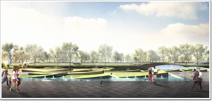 在鋪裝、綠化與流線設計上與旁邊豐樂能源大廈相呼應。將綠色、生態充分融入商業廣場空間中,無縫銜接周邊的城市綠地,使之形成整體統一的立體景觀環境,為繁忙的城市生活注入大自然的舒適宜人。