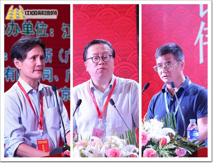 技術(shù)交流會(huì)上,來自主辦單位的三位領(lǐng)導(dǎo):中國建筑玻璃與工業(yè)玻璃協(xié)會(huì)周志武秘書長(左)、中國建筑科學(xué)研究院幕墻門窗研究中心王洪濤主任(中)、應(yīng)急管理部四川消防研究所王良偉主任(右),紛紛上臺(tái)致辭。