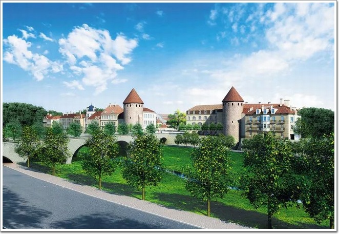 克倫諾夫區(qū)參考捷克小鎮(zhèn)克倫諾夫的城堡、教堂、修道院等大型建筑的建筑特色,整合蜿蜒曲折、壯麗秀美的河流,構成尺度宜人的步行空間。