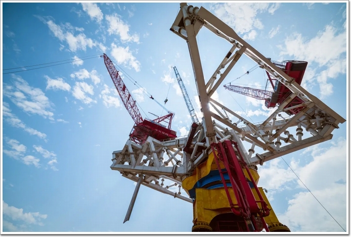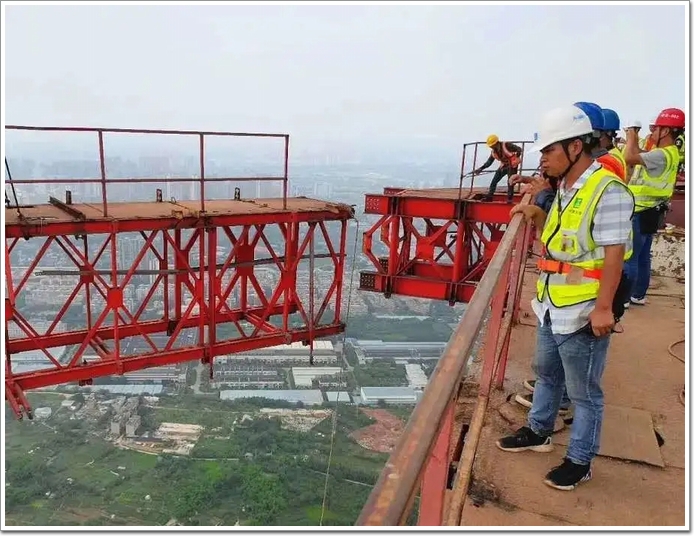 為實現(xiàn)蜀峰468快速“向上生長”,8月初,成都綠地中心·蜀峰468項目對“空中造樓神器”廻轉(zhuǎn)塔機(jī)頂模鋼平臺啟動規(guī)模最大的一次改造工作——鋼平臺懸挑梁桁架拆改。