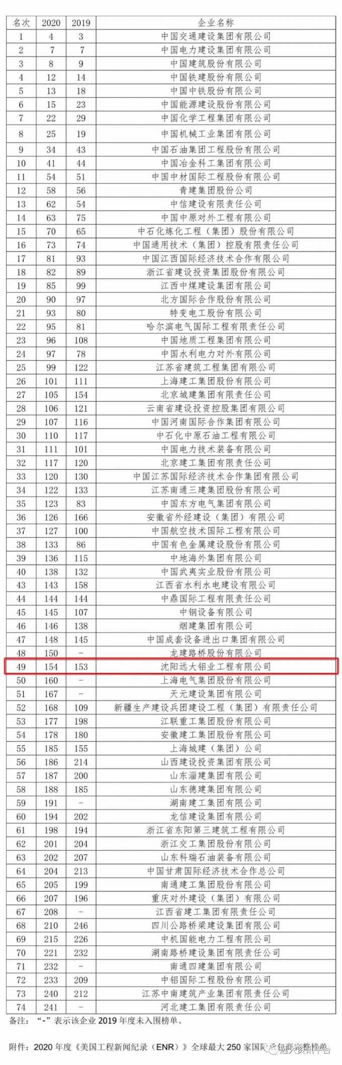 ENR榜單是國際工程界公認的、較為全面反映年度國際工程市場發展狀況的權威排名,具有極高的權威性和廣泛的影響力,堪比工程界的“《財富》世界500強排行榜”,同時也為業主提供了極高的參考價值。從另一方面也反映了沈陽遠大鋁業工程有限公司作為全球唯一入選的幕墻企業已經得到了國際市場的肯定與信任。