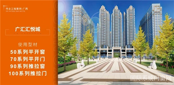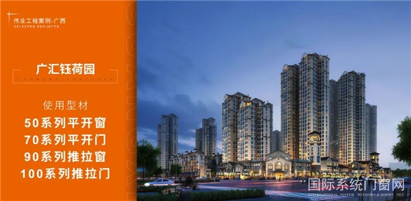 廣匯名都作為廣匯集團首筑江南,禮獻南寧的作品,項目選用偉業集團50系列平開窗、70系列平開門(詞條“平開門”由行業大百科提供)、90系列推拉窗、100系列推拉門系列型材,以品質建筑要求革新人居生活。