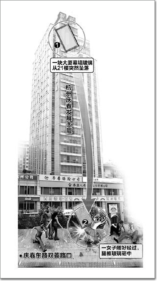案例2:上海某大樓一夜間多塊中空玻璃外片墜落。