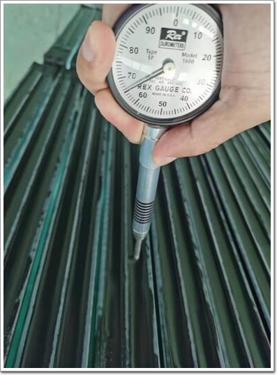 圖4 某項目中空玻璃二道密封膠注膠(詞條“注膠”由行業(yè)大百科提供)半個月之后的硬度