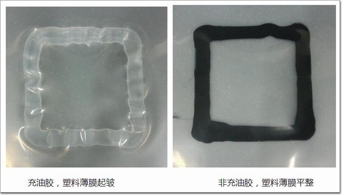充油膠,塑料薄膜起皺 非充油膠,塑料薄膜平整