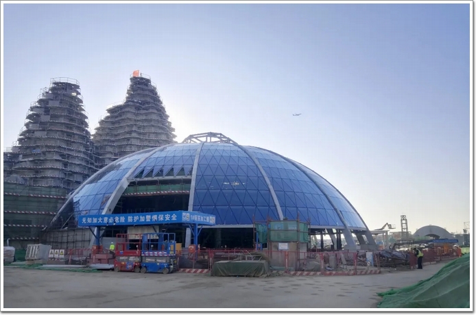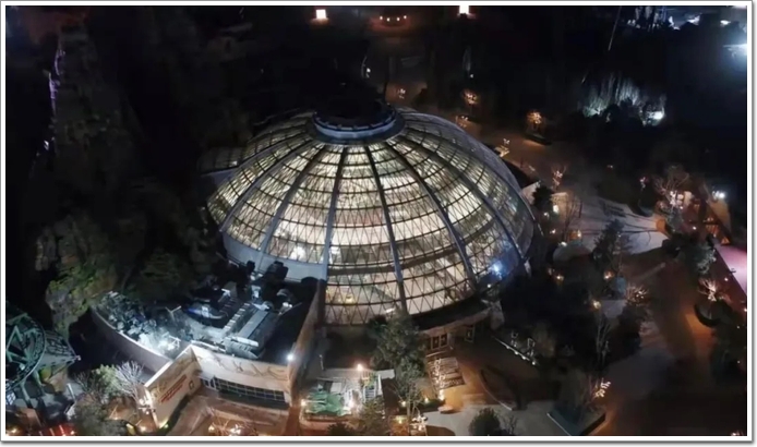 由江河幕墻北方大區負責施工的侏羅紀世界中的百鳥園穹頂幕墻,是北京環球度假區七大主題園區中幕墻面積最大、施工難度最高的幕墻工程。建筑的球形外觀在園區中獨具魅力,讓人仿佛置身于電影中的世界。