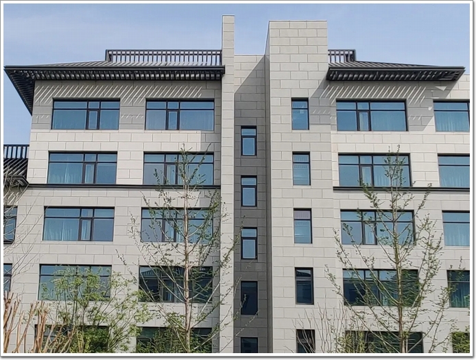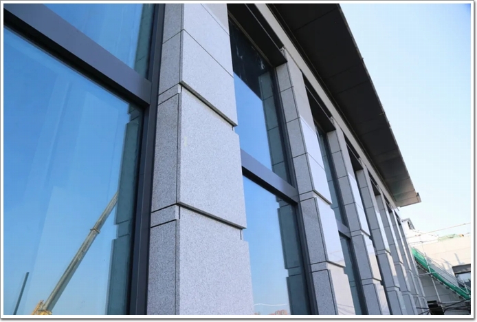 石材掛裝過程中,將石材板塊的安裝采用了不銹鋼背栓(詞條“背栓”由行業大百科提供)配合高精度鋁合金掛件系統,并將配合間隙精準控制在0.5mm;石材錯縫排版過程中,工人都要持證上崗,只有經過層層考核篩選,技術非常優秀的打膠工人才能入選打膠這道工序。整個安裝過程都嚴格執行崗位培訓,項目部要求每位工人安裝首樣合格后,要將安裝流程和質量控制要點熟記于心,才能開始批量作業。