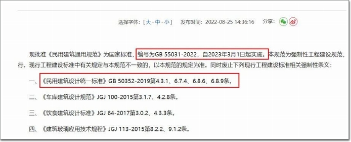 可以看到:《GB55031-2022 民用建筑通用規(guī)范》最新規(guī)定: