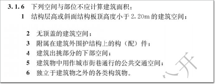 3.1.6第一款:結(jié)構(gòu)層高小于2.20m的建筑空間,列為不應(yīng)計算建筑面積的范圍。