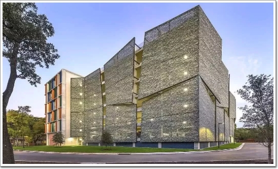 這種材料能讓體量較大的建筑呈現輕盈而通透的視覺感,分為金屬織物幕墻和柔性材料的非金屬織物幕墻。