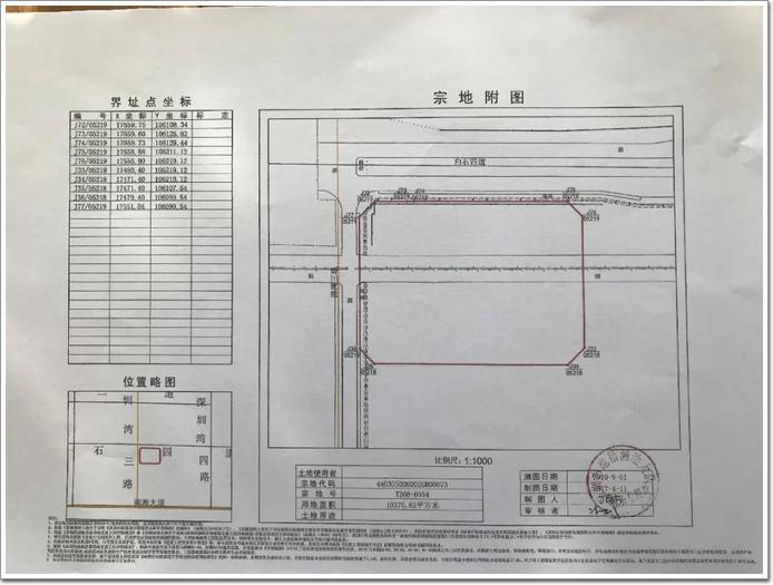 T208-0054宗地位于深灣三路與白石四道交匯處東南角,土地用途位商業服務業用地,土地性質是商品房,土地使用年期30年,自2017年12月19日起到2047年12月18日止,土地面積為10376.82平方米。