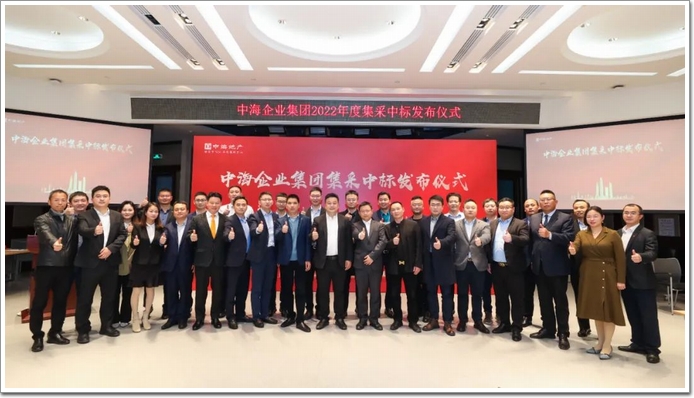 2022年2月18日,中海企業集團2022年度第一批次集采中標儀式在深圳中海大廈成功舉辦。中海企業集團助理總裁郭磊出席儀式并為首批50家中標單位頒發中標通知書。