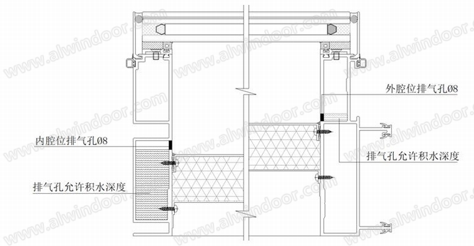 第一條經驗:排氣孔盡可能設置到立柱的內腔。在單元板塊平放狀態下時,位于外腔的排氣孔是在低水線位置,而位于內腔的排氣孔是在高水線位置,所以排氣孔位于內腔時,由排氣孔進水的概率就會小很多;