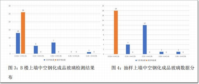 3、上墻與落地兩種情況下成品中空鋼化玻璃平面彎曲度檢測數據對比