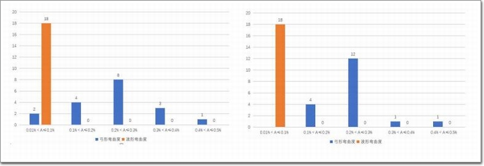 4、上墻后成品中空鋼化玻璃與送試驗室單片鋼化玻璃平面彎曲度檢測數據水平對比分析
