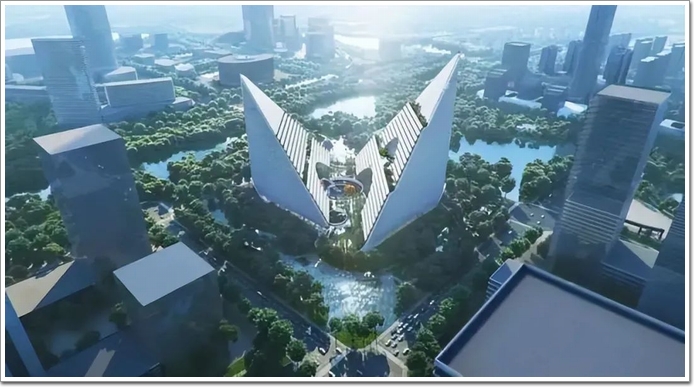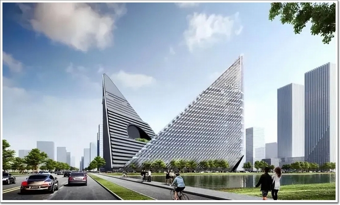 畢竟是“宇宙中心”——藍(lán)廠“VIVO”在未來(lái)科技城的大廈,造型就是英文字母“V”字。