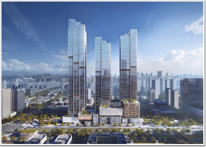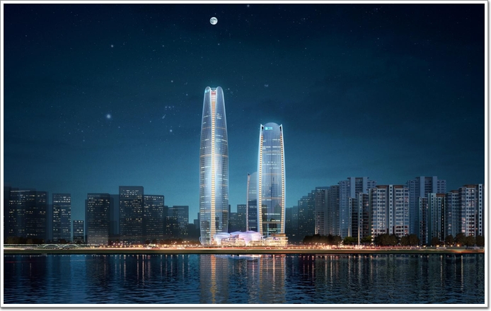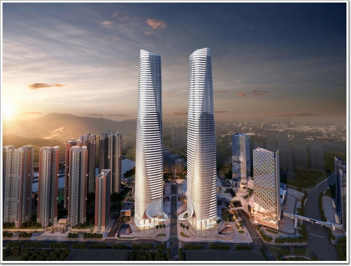 星河雅寶雙子塔項目位于深圳市龍崗區梅坂大道與雅寶路交匯處,雅寶路1號星河WORLD園區,項目由兩棟超級地標摩天大樓組成,建筑高度369米,建筑面積354404.33平米,是當前深圳最高的雙子星摩天大樓,也是中國最高的雙子星摩天大樓。幕墻形式:單元式幕墻。建筑師:AECOM設計院