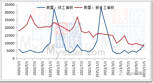 2020年-2022年我國(guó)房屋新開(kāi)工及竣工面積