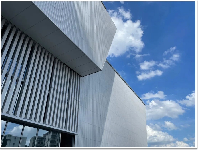 作為“藝術中心”的絕對亮點——幕墻,為了實現“鵝潭寫意、云山藝境”的設計理念,使幕墻呈現最好的視覺效果,設計團隊精心設計,近8萬平方米的幕墻“外衣”共包含11大幕墻系統和22個子系統,大量采用白色陶板、陶棍。