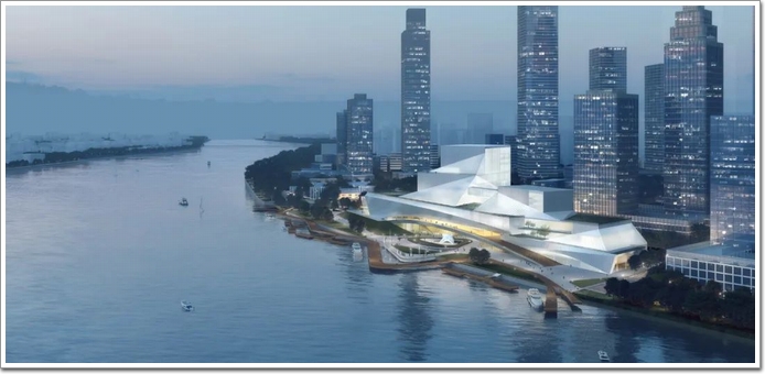 藝術、文化與非遺的多重融合︱白鵝潭大灣區藝術中心位于廣州市荔灣區白鵝潭產業金融服務創新區,項目由中國工程院院士何鏡堂領銜的華工團隊操刀設計。
