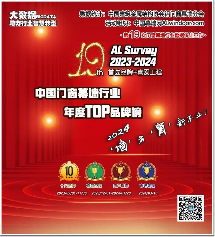 用“熱愛”,用“擔當”——賦能行業發展,2023-2024年度AL-Survey由中國建筑金屬結構協會鋁門窗幕墻分會提供數據支撐,中國幕墻網ALwindoor.com主辦。每一屆的“年度喜愛幕墻工程”評選,更是以其更是以“高、大、新、奇”(高質量、大難度、新工法、奇設計)的新時代標準,被喻為“魯班獎”的前哨站、“詹天佑獎”的排頭兵。