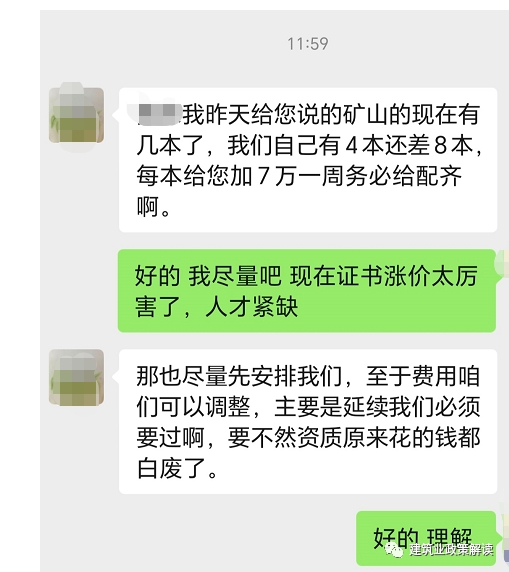 據(jù)了解到部分民營(yíng)礦山一級(jí)企業(yè)因資質(zhì)人員找不到,既然做出了放棄資質(zhì)的打算,畢竟礦山一級(jí)就得配本專業(yè)建造師12本,光掛靠費(fèi)就得幾百萬(wàn),這還不算一年的社保費(fèi)用,真是很大一筆開銷。