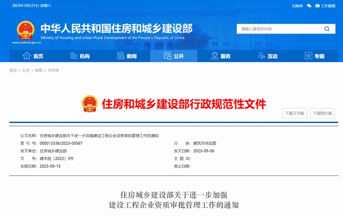 住房城鄉(xiāng)建設(shè)部關(guān)于進(jìn)一步加強(qiáng)建設(shè)工程企業(yè)資質(zhì)審批管理工作的通知(建市規(guī)〔2023〕3號(hào))