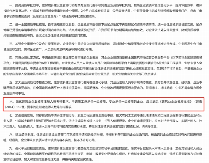關(guān)于地方動(dòng)態(tài)核查也只是疲于應(yīng)付,每年抽查的企業(yè)并不多,而為了應(yīng)付地方的動(dòng)態(tài)核查很多企業(yè)都是臨時(shí)找的建造師掛靠掛3個(gè)月,核查通過(guò)后,沒多久又恢復(fù)了原樣,而且地方動(dòng)態(tài)核查并不要求唯一社保,所以造成了近年來(lái)一級(jí)建造師掛證市場(chǎng)低迷,而多年來(lái)部門天天喊嚴(yán)查掛證,掛證推出歷史舞臺(tái),央視也多次報(bào)道,但是始終無(wú)濟(jì)于事,畢竟住建部資質(zhì)升級(jí)簡(jiǎn)化了人員要求,也簡(jiǎn)化了資質(zhì)延續(xù),連續(xù)兩年的資質(zhì)自動(dòng)延續(xù)讓企業(yè)徹底放松了警惕,但隨著資質(zhì)改革的推進(jìn),住建部于2023年9月6日正式發(fā)布資質(zhì)審批管理辦法通知,要求資質(zhì)升級(jí)企業(yè)必須按照資質(zhì)標(biāo)準(zhǔn)配備人員,且除了人員要求外除了自2024年1月1日起由住建部審批的:建筑工程、市政公用工程、電力工程、礦山工程、冶金工程、石油化工工程、機(jī)電工程施工總承包資質(zhì)申報(bào),業(yè)績(jī)必須錄入四庫(kù)一平臺(tái),且業(yè)績(jī)必須為A類。所以很多企業(yè)都在2023年底前沖擊一級(jí)資質(zhì),開始找注冊(cè)人員。當(dāng)企業(yè)都在為資質(zhì)審批管理規(guī)定而不在乎的時(shí)候,住建部又一次發(fā)布資質(zhì)延續(xù)通知,2023年12月31日資質(zhì)到期的必須延續(xù),而且這次嚴(yán)查注冊(cè)人員全國(guó)唯一社保。所以目前有大量的企業(yè)在求購(gòu)證書。只要你有證,而且是唯一社保,具體價(jià)格你定的情況。