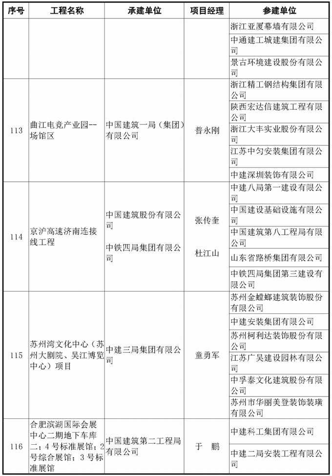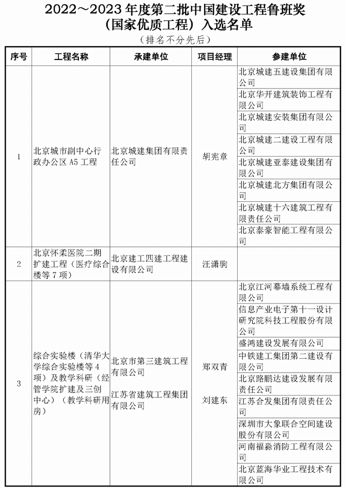 2023年11月17日,中國建筑業協會公示《2022~2023年度第二批中國建設工程魯班獎(國家優質工程)入選工程名單》,127項工程入選!