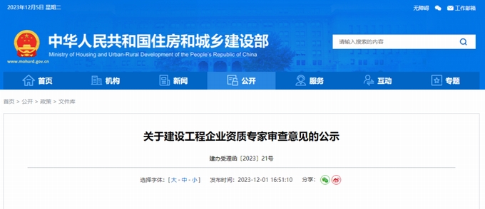 近日,住房城鄉建設部官網公示了新一批建設工程企業資質專家審查意見,包括工程勘察資質專家審查意見、工程設計資質專家審查意見、建筑業企業資質專家審查意見、工程監理企業資質專家審查意見。