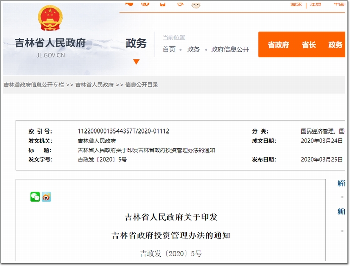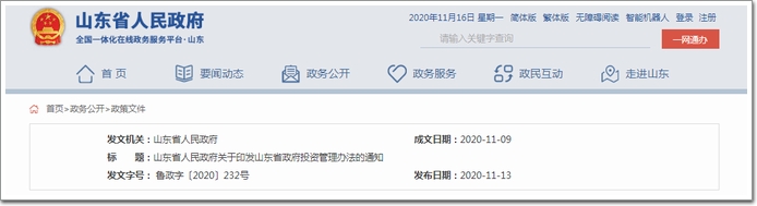 2020年11月9日,山東省印發(fā)《山東省政府投資管理辦法》,未提及此內(nèi)容。