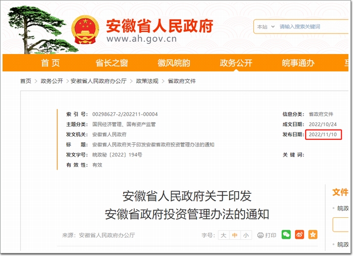 查看全文:安徽省人民政府關(guān)于印發(fā)安徽省政府投資管理辦法的通知(皖政秘〔2022〕194號)