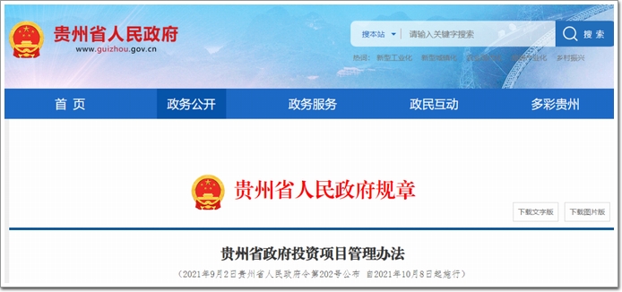 貴州省政府印發(fā)《貴州省政府投資項目管理辦法》 ,自2021年10月8日起施行,與四川省類似,其處罰措施也很重。