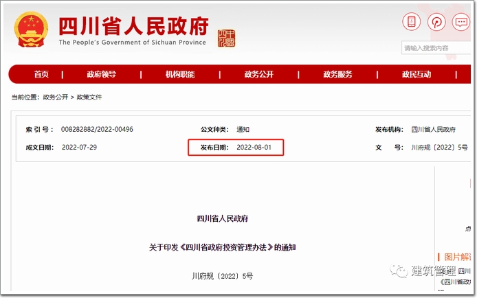 2022年8月1日,四川省政府正式出臺《四川省政府投資管理辦法》,本辦法自2022年10月1日起施行。