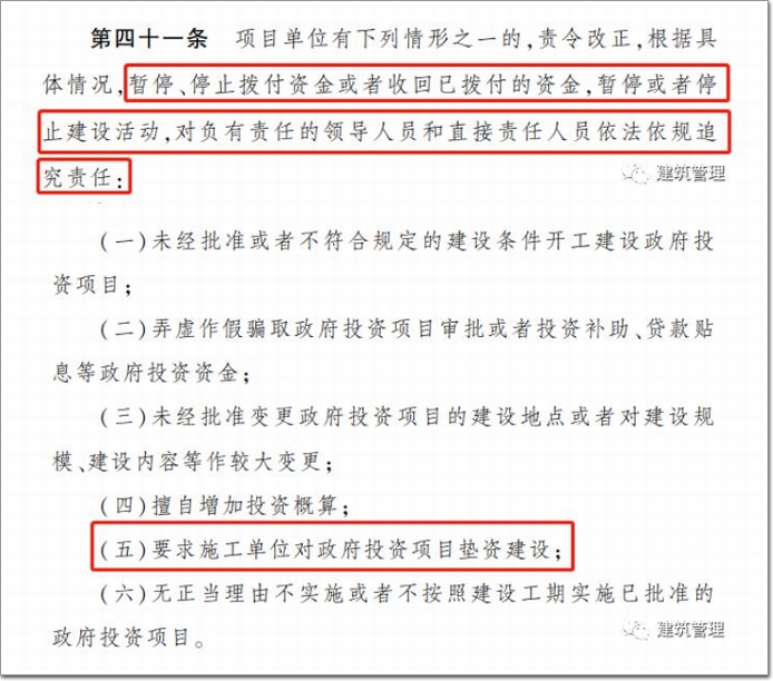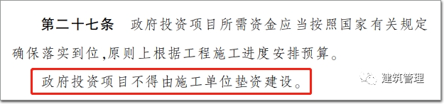 1、禁止“墊資施工”:政府投資項目不得由施工單位墊資建設(shè)。