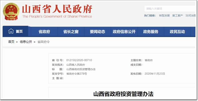 查看全文:《山西省政府投資管理辦法》山西省人民政府令第278號