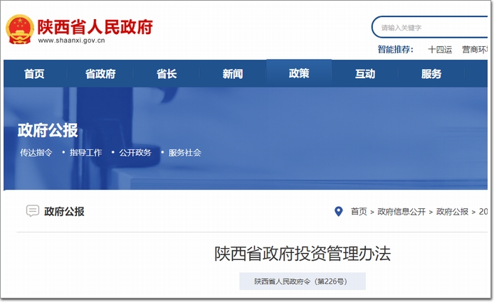查看全文:《陜西省政府投資管理辦法》陜西省人民政府令(第226號)