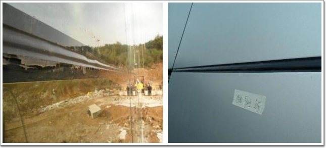 左邊是玻璃幕墻膠縫起鼓;右邊是鋁板幕墻膠縫起鼓