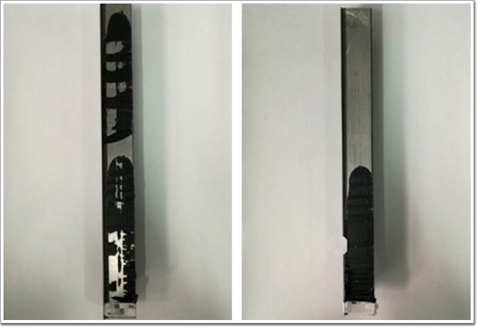 現(xiàn)場隨批玻璃粘接性試驗粘接不良(左)與粘接良好(右)對比