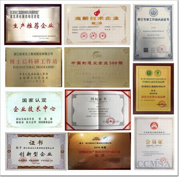 經過十多年的發展,新安建筑膠已形成幕墻、門窗、中空玻璃、綠色家裝、裝配式建筑五大領域專業解決方案,并用實際行動詮釋了品質鑄就品牌,用“新”成就未來的價值理念。一路走來,新安取得了長足進步,更收獲了業界的諸多榮譽與資質肯定,其中包括中國制造業500強、高新技術企業(詞條“高新技術企業”由行業大百科提供)、綠色裝飾品牌、國家認定企業技術中心、建筑用硅酮結構密封膠生產推薦企業、浙江房地產采購經理人聯盟優質合作單位及浙江省優秀工業產品等。同時,新安建筑膠通過了中國綠色建材產品認證,榮獲“2023房建供應鏈綜合實力TOP500首選供應商-密封膠類”和“2023房建供應鏈綜合實力TOP500首選供應商-裝配式建筑用膠類”5強,且連續三年上榜。